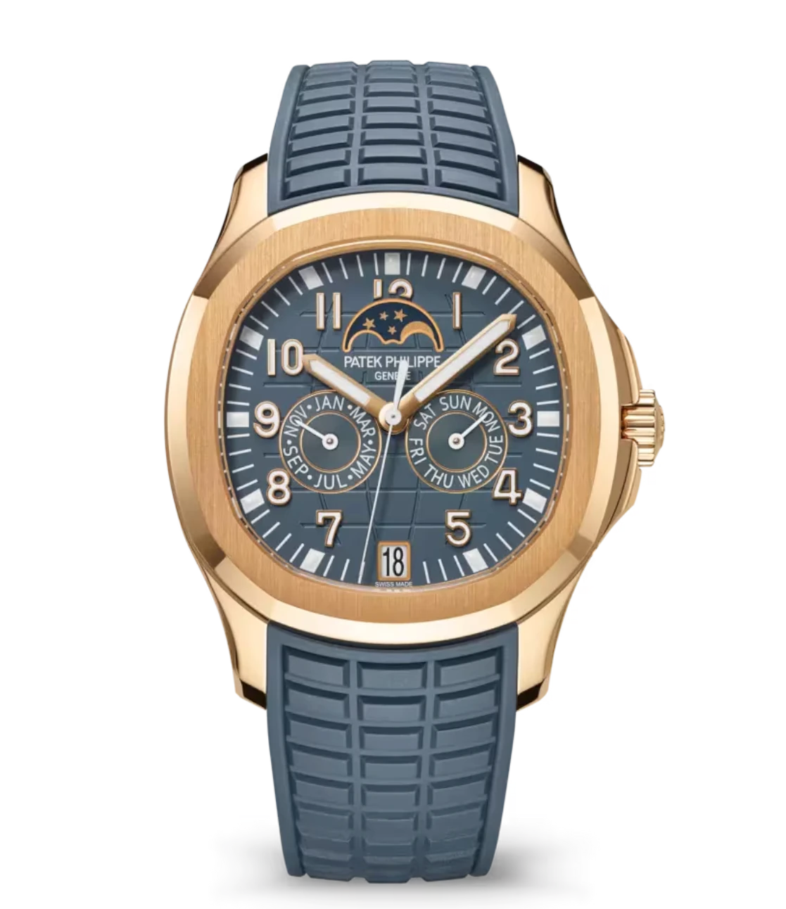 Patek Philippe Aquanaut Annual Calendar Rose gold and Opaline blue-gray dial blue-gray Composite material Strap Ref. 5261R-001