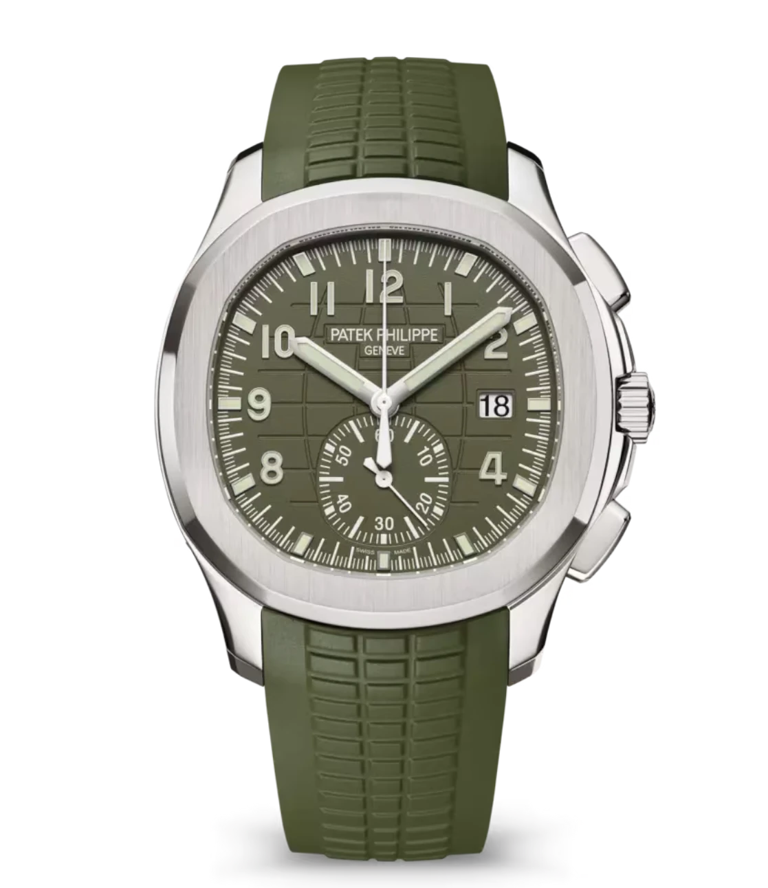 Patek Philippe Aquanaut Chronograph White gold and Khaki green varnished dial khaki green Composite material Strap Ref. 5968G-010