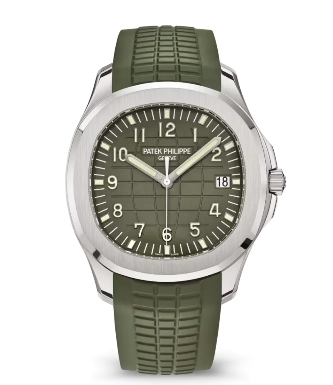 Patek Philippe Aquanaut Date White gold and Khaki green varnished dial khaki green Composite material Strap Ref. 5168G-010