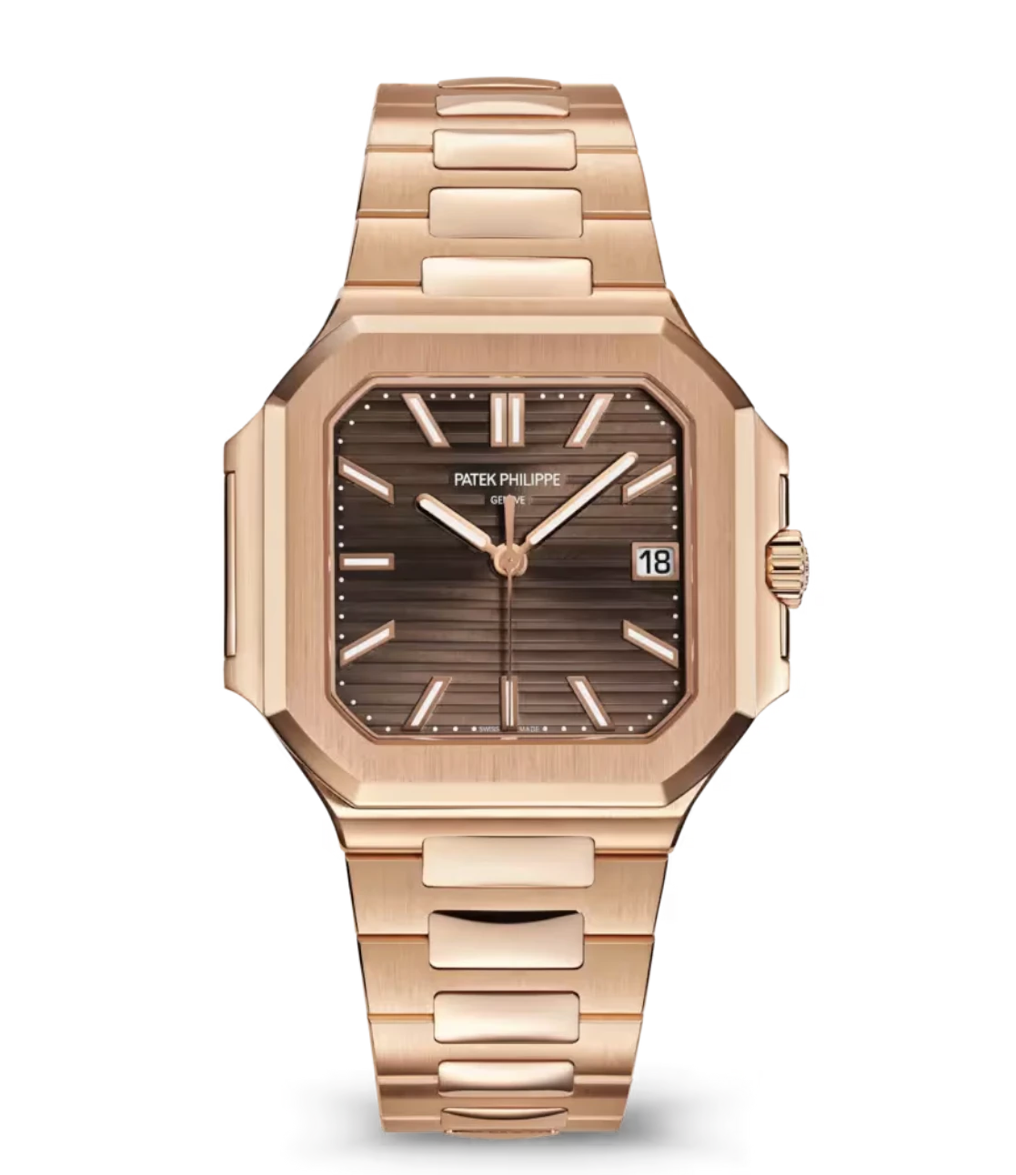 Patek Philippe Cubitus Rose gold and Sunburst brown dial Rose gold patented fold-over clasp bracelet Ref. 7128/1R-001