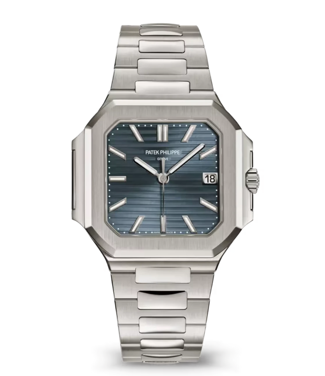 Patek Philippe Cubitus White gold and Sunburst blue-gray dial White gold fold-over clasp bracelet Ref. 7128/1G-001