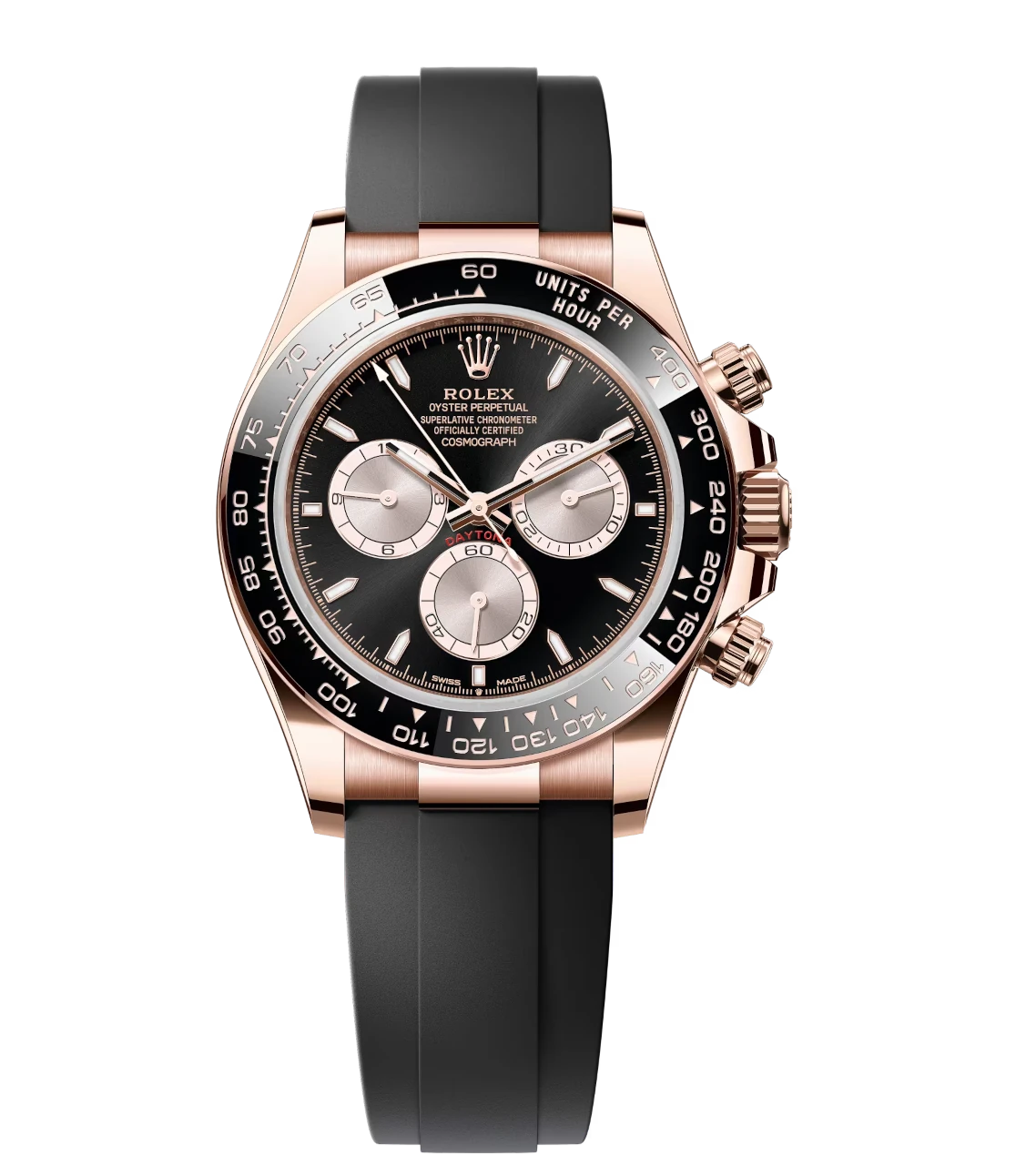 Rolex Cosmograph Daytona 40 Oyster Perpetual 18 ct Everose gold bright black and Sundust dial Oysterflex band Reference 126515LN