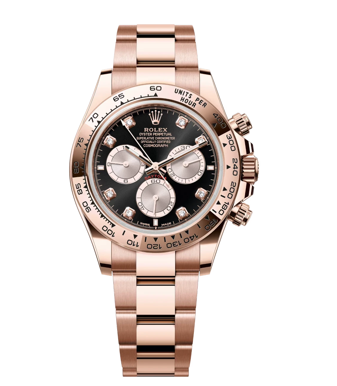 Rolex Cosmograph Daytona 40 Oyster Perpetual 18 ct Everose gold bright black and Sundust, diamond-set dial Oyster band Reference 126505